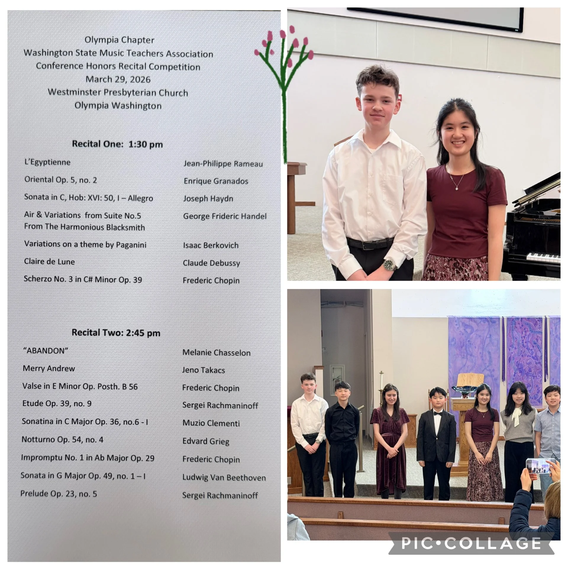 Every year, MAP students are eligible to compete for the WSMTA Conference Honor Recitals -for all the teachers in the state! The competition is fierce, and this year’s competition was full of excellent performances. Alex played Handel’s “Harmonious Blacksmith Air & Variations” and Phoebe played Chopin’s “Scherzo #3 in C# Minor”. Well done to both of you! Congratulations to Phoebe who is the winner and will play at the Honor Recital!